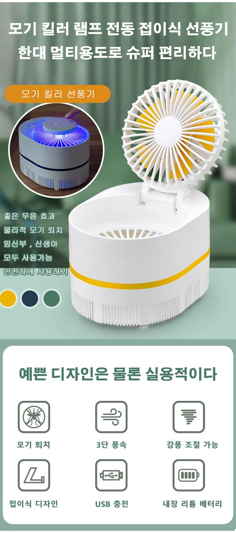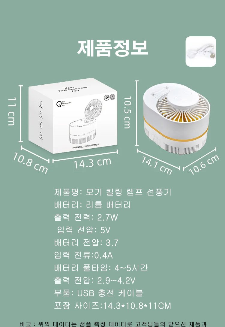 USB 미니 선풍기 모기 킬러 램프 전동 접이식 선풍기